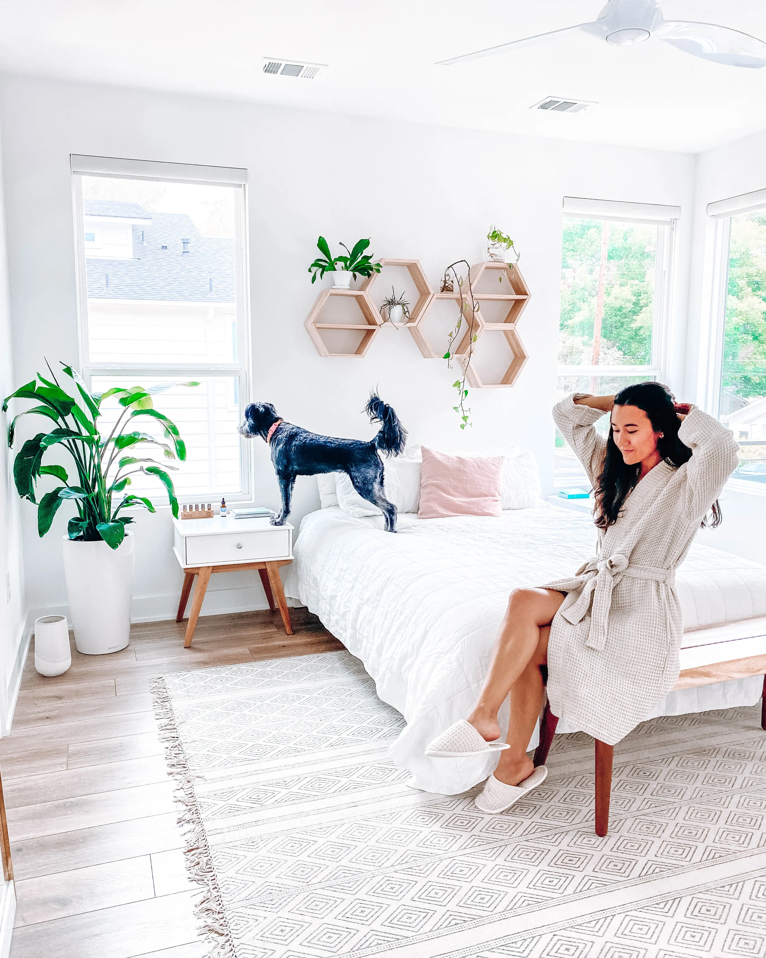 I’ve used linen sheets from Parachute for ages, and recently we upped our bedding game even further when we got a Parachute mattress topper. Now, I'm even more excited to go to sleep every night! It actually feels like I'm sleeping in a really nice hotel bed. When I lay down it’s like I'm sinking into a cloud. I honestly wish we had done it sooner. Investing in high-quality bedding is something that I've prioritized because getting quality sleep is so important to overall health, mental clarity and productivity. If you can swing it, I definitely recommend it. More on that in our Modern + Minimal Master Bedroom Reveal.