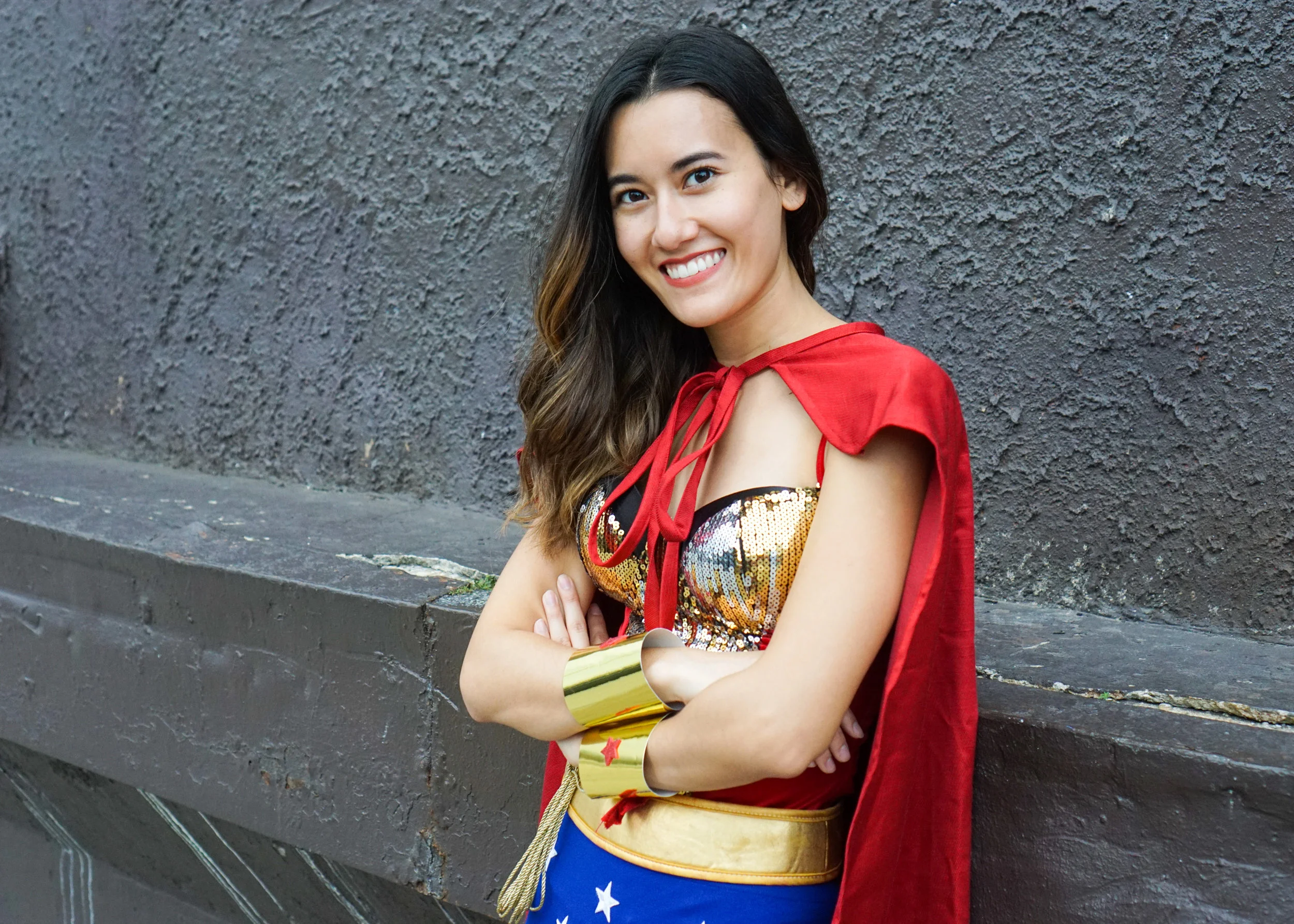 I love love love Halloween + dressing up. It's one of my favorite holidays! Every year it creeps up on me, and I scramble last minute to throw something together, but it always works out. This year, I asked my mom to send my old Wonder Woman costume I made in college (with the help of a friend). I figured it deserved another go at Halloween!
